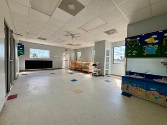 Former daycare center with open spaces and easily ready for build-out. Main building consists of approx. 10,000 sq ft of reception area, hallway, multiple offices, classrooms and storage areas as well as multiple bathrooms and full kitchen. HVAC consists of conventional units as well as ductless mini-splits for dedicated temperature needs. Attached segregated space with its own access consists of approx. 5,000 sq ft of open space with a couple offices and 2 restrooms that had been multiple different tenants previously such as beauty salon, barber, car audio retail and installation and most recently a resale shop to assist with funding daycare operation. Space can be very easily opened back up by simply removing the only demising wall between the 2 spaces for approx. 15,000 sq ft of contiguous space. Front parking lot has expansive space for parking and has 2 curb cuts for ease of access and egress. Large back area for additional parking or future expansion or use as-is for laydown yard. Side yard has dedicated gate access and fenced area.