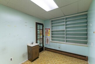Previously used as a doctor's office, this property seamlessly combines commercial and residential spaces. The main level features a professional office layout with a waiting area, reception space, five private exam rooms/offices, and a full bathroom. Toward the rear, a spacious living area includes a large kitchen, living room, bedroom, and full bathroom. A two-car garage offers convenient parking and storage.