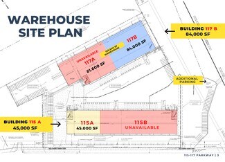 45,000 SF available, featuring 10 Loading Docks with dock levelers (9' x 10'), and a 3,075 SF office space.