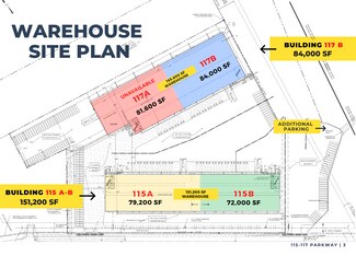 Trailer parking is available for lease from 4 to 7 acres. The full 7-acre area adjacent to the buildings can accommodate up to 360 trailers and is zoned for heavy industrial use.