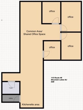 About Suite D28 - Introducing an excellent opportunity to purchase an office suite in a professional office building in the heart of Mountain Lakes, NJ. This suite is at 115 Route 46, known for its prime location and accessibility. This office suite comprises four separate and spacious offices, a well-equipped kitchenette, and a private restroom, and it is approximately 1,234 square feet. The suite is designed to provide a professional atmosphere that will impress clients and employees alike. The suites interior features high-quality finishes, including flooring and ample natural light, making it an ideal space for businesses such as medical professionals, financial advisors, lawyers, and consultants.
