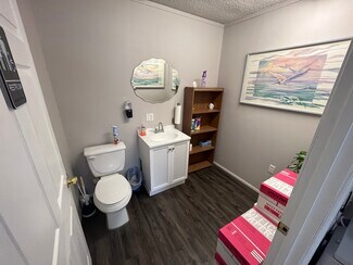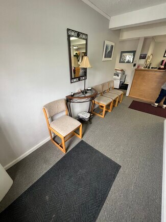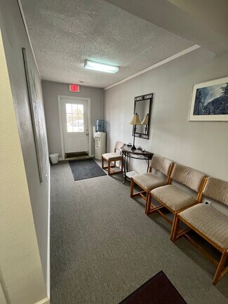Office Space for lease in Camdenton, MO. Easy access and high visibility on Highway 54. Two private rooms with flex space. Two interior bathrooms. Kitchenette area. Previously utilized by CPA firm. $950/mo. Available July 2023.