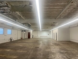 • Free standing industrial/flex/creative building with concrete floors, high ceilings, 600 Amp power & secured parking lot with wrought iron fencing.