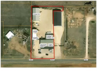The property features a 2,400 SF leased space occupied by Lynn County Hospital and 900 SF occupied by Four County Special Ed. 5,000 SF of storage units and 700 SF of office to be leased for three years by current owner at closing.