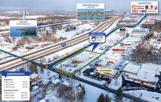 - Prime retail location with high traffic exposure - Maximum visibility at signalized corner with 20,000~ vehicles per day - Open floor plan well suited for adaptive reuse and innovative transformation - including retail, foodservice, medical, grocery, convenience store, community center, entertainment, automotive, office, etc. - Zoned C-2 Commercial - Across from SUNY Fredonia campus with 3,500 students - Strong retail synergies, adjacent to 200,000~ sq. ft. D&F Plaza - Ample parking for 85+ vehicles with two curb cuts - Drive-thru - 180 feet of frontage on Central Avenue - 1.5 acres - Excellent condition, 2000 construction - Close proximity to I-90 interchange, convenient connection to Buffalo, Erie and Cleveland - Ground lease $5,454/month with 14 years remaining