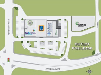 • Rare opportunity for high profile drive-thru in Creve Coeur • Shadow-tenants include: Aldi, FedEx Kinko’s, St. Luke’s Open MRI, and Vincent’s Jewelers • Situated at the busy intersection of Olive Boulevard and N. New Ballas Road, just east of I-270 • Olive Boulevard serves as the main retail corridor for Creve Coeur and a major East-West artery for West St. Louis County • Located directly adjacent to the 1.3 million square foot CityPlace Campus, which is comprised of Class A office, medical, and retail space