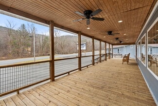 Outdoors, a generous covered porch provides seating for an additional 30+ dining guests. The property boasts the second-largest paved parking lot in Sperryville, offering space for 20+ vehicles. The site also includes a valuable grandfathered billboard sign—an entitlement that would be un-buildable under today’s zoning regulations.