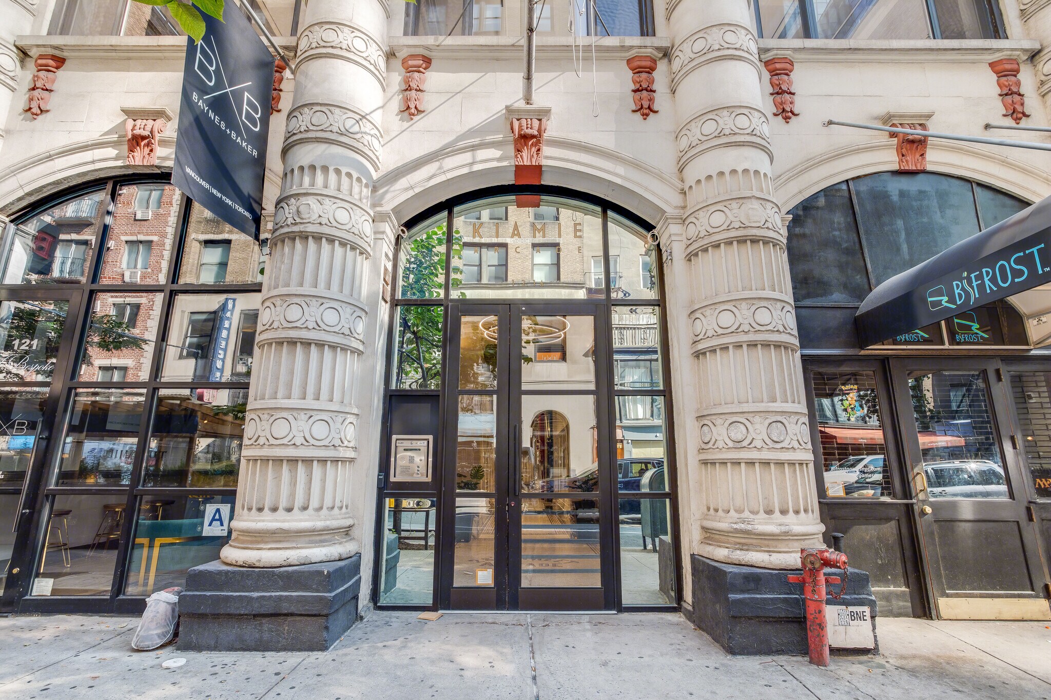 The Kiamie Arcade Building is located at 118 East 28th Street in NoMad. The classic arcade-style building has a fully attended lobby and the elevators recently underwent a full renovation. Many of the suites in the building feature classic amenities like exposed brick and great natural light coming through the large windows.