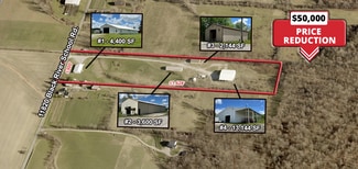 Building 1, nearest the street, is 4,400 SF and has a 12' x 20' drive-in door. Inside there is a temperature-controlled private office, a propane-heated warehouse, and a workshop.