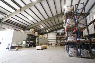 Building 4 is 13,144 SF with 2 ground-level doors, 16' x 20', 1 dock and ramp, and includes a 3,000 SF canopy. The 8,000 SF warehouse space is illuminated with LED lighting, the ceiling and walls are insulated, and the wall height is 28' and 36' at peak. There is a 2,144SF climate-controlled production area and a restroom.