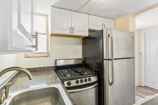 - Three two-story brownstone-style residences featuring classic architecture and thoughtful floorplans. Each offers spacious main-level living areas with full kitchens—including dishwashers and microwaves—and convenient half baths. Upstairs, tenants enjoy two bedrooms, a full bath, and additional storage space. Many units retain their original hardwood flooring, built-in cabinetry, and vintage fixtures, while some offer modern updates such as A/C and ceiling fans. Each unit also includes a small private rear patio for outdoor enjoyment.