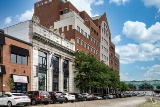 Stunning architecture throughout in these expansive spaces located in the highly desirable Railhead District in vibrant downtown Hoboken. Located directly across from the Downtown Hoboken Transit Hub with maximum exposure and foot traffic. Rare opportunity to be located in a Historic Bank Building, offering massive, light filled windows with valuable exterior signage opportunities. 15 Foot Ceilings, HWD Floors and custom work throughout make these spaces truly one of a kind...