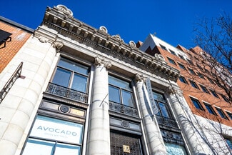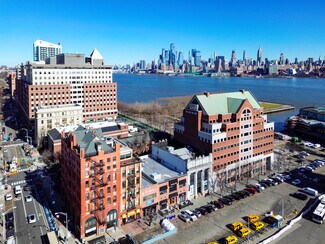 Exceptional Office/Retail space or Showroom, boasting captivating 15’+ ceilings, hardwood floors, and expansive windows that flood the space with natural light. Both spaces can be combied. Custom light fixtures and moldings enhance the ambiance, elevating the atmosphere to one of sophistication and style. This rare opportunity in the Historic NJ Trust Bank Building, featuring massive, light-filled windows and custom work throughout. Conveniently located across from the Downtown Hoboken Transit/PATH and in close proximity to the New Redevelopment Zone with easy access to transportation in a vibrant area. Don't miss the chance to make this remarkable space the home for your business. Embrace the opportunity to set up shop in this prestigious location and elevate your business to new heights. Many uses and possibilities for this unique space... Events, retail, yoga, fitness, dance, general office, finance or company headquarters.