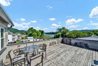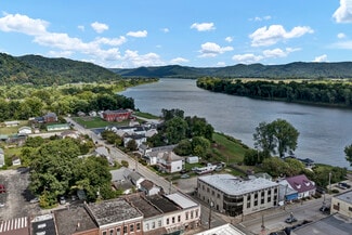 Immerse yourself in the stunning rooftop river views of a picturesque Ohio River town with this extraordinary property. Showcasing a comprehensive restaurant kitchen and bar on the ground floor or could be transformed into other options than a restaurant and a roomy private 2000 sq ft, 3-bedroom, 2-bathroom residence upstairs, this unique space truly has it all. The versatile 1000 sq ft deck and a large loftlike room that is around 2000 sq ft w/two half bathrooms are accessible from both the apartment and downstairs with private entrances, can be sectioned off for additional privacy. The lower level can host up to 250 seated guests, featuring a stage area that would be perfect for such things as wedding ceremonies, presentations, or live performances. Formerly a hotel then changed to an office building, this property has immense potential for various uses. Recent renovations include updates to the HVAC, plumbing, electrical systems, windows, paint, an industrial hood in the commercial kitchen, and much more.