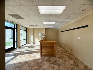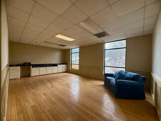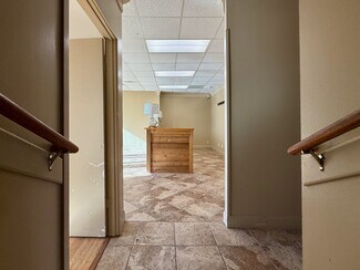 The ceilings are roughly 8 ft 10 in high and all the rooms are on HVAC. The rooms are fitted with either tile or laminate, providing a durable surface suitable for various business or storage needs. Reception is situated between the offices offering a flexible layout. Reserved parking spaces (up to 3) are negotiable however there is ample unreserved parking and a circle drive.