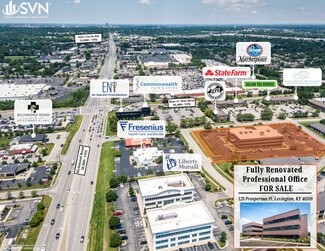 Fully renovated 47,754 SF three story office building on 2.87 acres at 120 Prosperous Place in Lexington, KY. Located at the prime corner looking over Richmond Road and Man O War.