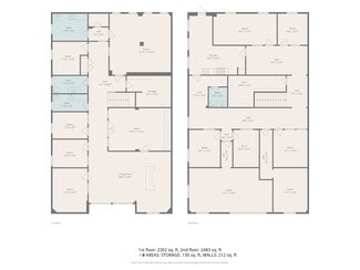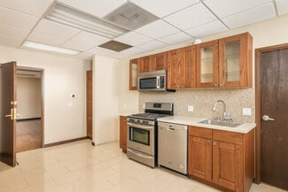 The second floor is configured as an executive suite, anchored by a distinguished executive office surrounded by six additional private offices and a kitchen. The space benefits from seven skylights, flooding the floor with natural light, and ceiling heights ranging from approximately 8 to 11 feet, creating an open and refined working environment. The second floor is accessed via a central staircase, and the building includes two dedicated storage/server rooms, one on each level.