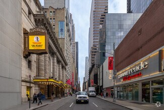 The property offers a robust amenity package, including a tenant lounge with a bar and kitchen, conference facilities for up to 70 people, private phone booths, and a bicycle storage room with showers. On-site dining options include the renowned Bob Van’s Restaurant and BV Burger, complemented by nearby Michelin-starred restaurants and Broadway theaters.