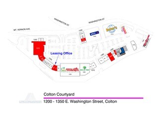 Colton Courtyard at 1200-1330 E Washington Street is a major GROCERY ANCHORED retail center adjacent to the Interstate 215 Freeway and situated 1 mile south of the Interstate 10 and 215 interchange. This retail destination is anchored by VALLARTA SUPERMARKET, DOLLAR TREE, Goodwill and Dunkin Donuts. New exterior construction was completed in August of 2025. Most vacant units are spec suites with brand-new interior construction, including modern restrooms, stained, sealed, and polished concrete floors, and new 2 ft. x 2 ft. ceilings with energy-efficient LED light fixtures. An on-site professional and responsive property management and leasing team provides convenient assistance and support.