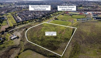 The property located at 1201 American Canyon Road, American Canyon, California is an approximate 12.9-acre vacant parcel with an APN of 059-040-090-000. This parcel is directly adjacent to American Canyon High School and across the street from a residential project within a Specific Plan.