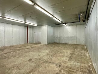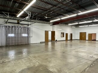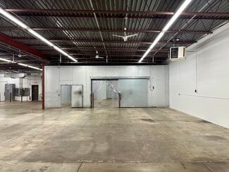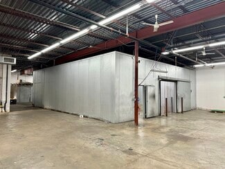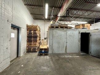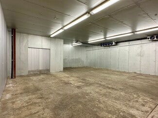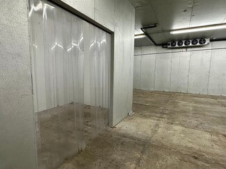 warehouse boasts 14’ clear heights, cooled warehouse for food uses, a 1,200 SF drive-in cooler with a separate cooled section, two walk-in freezers, and 3-phase, 4-wire, 600-amp power, gas-fired heaters and ceiling fans. Additional amenities include a double wide loading dock with one dock door, secured fenced parking for two vehicles, onsite