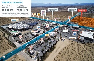 Positioned at the high-visibility intersection of Highway 395 and Palmdale Road, this commercial land offering presents a rare opportunity within one of Victorville’s most active retail corridors. The site benefits from exceptional frontage along two of the area’s strongest arterials, with traffic counts approaching 25,000 vehicles per day on Highway 395 and more than 22,000 vehicles per day on Palmdale Road, giving future owners meaningful exposure to steady regional and commuter activity. Surrounded by established trade-area anchors and supported by a growing consumer base, the property is poised for strong long-term positioning.
