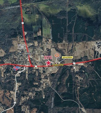 • Available: 10,477 SF former Family Dollar • Located on AL-Highway 96 with visibility to more than 3,895 VPD • Immediate retail co-tenants include Dollar General and Piggly Wiggly • Pylon signage available