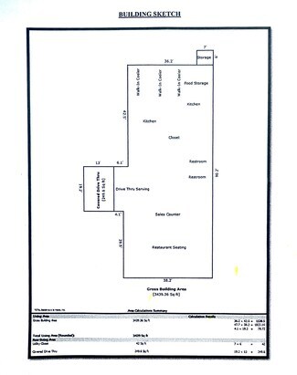 The interior has a restaurant seating area, sales counter, kitchen/prep area, 2 restrooms, 3 walk-in coolers, food storage area and a drive-thru serving area. The interior has tile flooring, drywall walls, suspended acoustic tile ceiling and fast-food restaurant tit and finish. The building is considered to be of good construction quality and in fair/average overall condition.