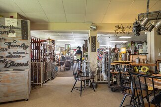 Set on a generous parcel, there is also outdoor space available for displays, seasonal events, or future enhancements. The building is zoned for commercial use, accommodating a variety of business models and expansion possibilities. Currently operating as a multi-vendor market. The primary building has a drop ceiling with a height of 9'3" in the main room (bulk of the building square footage) and 7'2" in one side room.
