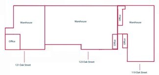 This standalone industrial building, totaling approximately ±25,679 square feet, is comprised of three distinct suites and is situated on a ±1.12-acre lot. Located at 119, 121, and 123 Oak Street, the property offers a versatile mix of office and warehouse space, making it ideal for a range of industrial or flex-use tenants. Suite 119 features ±7,358 SF with an open office area, three private offices, a restroom, and warehouse space. Suite 123 includes ±12,086 SF with one office, a restroom, and warehouse space. Suite 121 offers ±6,235 SF with four private offices, a restroom, and two small warehouse areas. The building is zoned DW (Downtown Zone) and includes 16 designated parking spaces. For pricing and additional details, interested parties are encouraged to contact the listing brokers.