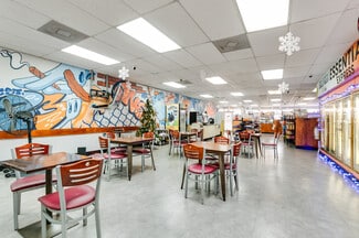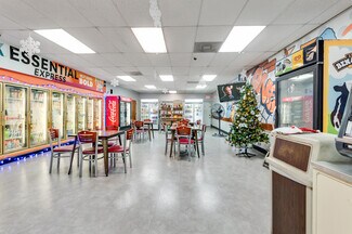 Welcome to your next investment opportunity in the heart of Richmond, VA's financial district. Ideal for an investor or an owner-operator, this prominent corner lot offers strong visibility and exposure along E Main St, with reported traffic counts of roughly 5,000–20,000 VPD. The property is divided into three distinct spaces. The first is a turn-key convenience store and deli/restaurant — fully built out with shelving, a wall of glass-door beverage coolers, a commercial kitchen with hood, a deli counter, and a café-style dining area. The second is a smoke shop and lounge concept with its own street-facing entrance, occupying both the ground level and a finished basement that features a custom bar, booth and banquette seating, a DJ/performance area, restrooms, and a prep/back-of-house area.