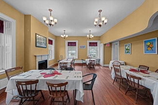 Exceptional opportunity to own a landmark mixed-use property in the heart of Charlestown's historic town center. Originally built in 1834, this beautifully restored property blends timeless character with modern upgrades, featuring a fully operational restaurant, event space, and additional income-producing units. The main building is home to a well-established restaurant and bar with seating for 70+ guests, plus seasonal outdoor deck seating. Rich in historic charm, the space showcases original curved walls, preserved mantels, crown molding, ceiling medallions, and a striking eastern winding staircase, complemented by exposed post-and-beam elements and warm wood flooring. The main level includes three public restrooms, while the upper level offers a private event space with its own bar (upgraded in 2020) and dining area. Additional storage is available in the full basement and walk-up attic. Major system upgrades include a 50-year asphalt roof (2011), 9-zone radiant heat with supplemental wall heaters (2011), upgraded 225-amp electrical service (2011), refinished floors (2011), a Bosch Buderus furnace, and a tankless hot water system (2023). The property also benefits from professionally installed spray-foam insulation in the walls and attic, significantly improving energy efficiency and reducing heating costs. The detached outbuilding, renovated in 2022, features a modern oversized studio apartment currently rented at $1,100/month with a stackable washer/dryer, along with a lower-level office/commercial/storage space, offering added flexibility and income potential. With a prime Main Street location and excellent visibility, this property offers a rare opportunity for investors or owner-operators looking for an exceptional asset with multiple revenue streams.