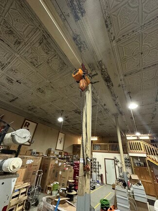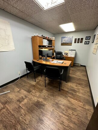 10,500 S/F building (plus Mezzanine space) available for lease on Main St, Elk Point. 3,500 SF of the building is currently finished as office (could be converted to warehouse) with the remainder warehouse/shop space. 18 ft. ceiling clearance in the warehouse with one drive-in 14ft OH door, along with crane and hoist. Building comes equipped with a 4-zone heat pump, 400 amps of power, manual elevators, fenced rear and side yard and excess parking. Generator and air compressor included