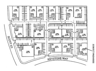The property for sale is a freestanding industrial building located at 1220 Keystone Way in Vista, California, within the Saddleback Vista Park business park. The building offers a total of 6,060 square feet, split evenly between improved office space and warehouse area (approximately 3,030 SF each). Constructed in 1990, the property features a minimum clear height of 14.5 to 16 feet, one grade-level loading door, and a fire sprinkler system throughout.