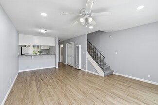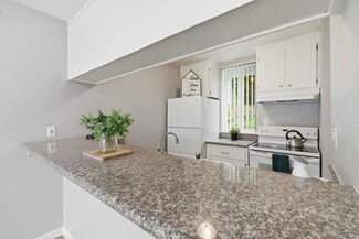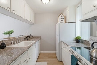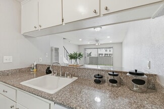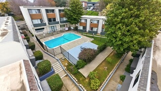 The community offers a mix of one-bedroom, two-bedroom, and three bedroom floor plans. All units are individually parceled and feature upgraded in-unit amenities such as dishwashers, garbage disposals, hardwood-style flooring, recessed lighting, high-speed internet access, washer/dryer hookups, and private balconies. Residents enjoy on-site gated parking, additional storage, and a sparkling private pool.