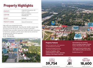• Surrounded by momentum: the new Chick-fil-A pad at Dutch Square, a planned 33K SF Richland Health Education Center and an $80M Riverbanks Zoo expansion are energizing the corridor.