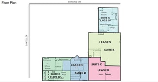 • Excellent exposure on Skyline Dr. with high daily traffic count • Minutes from Idaho Falls Regional Airport and downtown • Quick access to I-15 and US-20 • Large Shared Parking Lot Suite A: Shop 733 SF Lobby 480 SF Work Room 261 SF Offices 475 SF Suite E: Shop 1,440 SF Show Room 719 SF Office 174 SF
