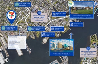benefits from nearby economic drivers such as Sentara Norfolk General Hospital, Eastern Virginia Medical School, and Norfolk Naval Station, as well as tourism from Nauticus, the Waterside District, and other cultural attractions.