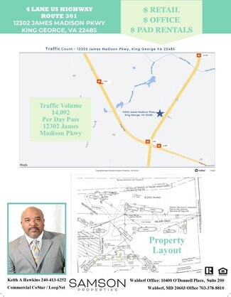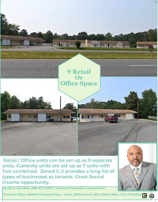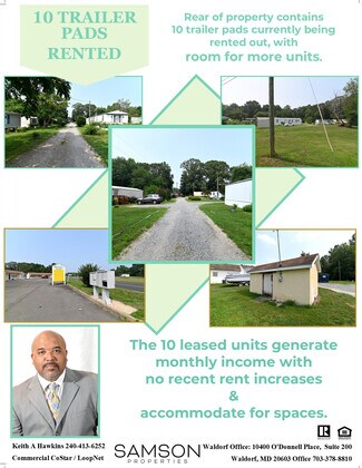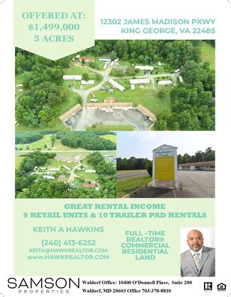 The front 9 office/Retail units can rent to a long list of businesses. Achievable gross yearly income $130,800 (Trailer pad rentals 10 spaces $72,000 and Retail 9 units totaling 7,000 sq ft $58,800). Located on 4 Lane US Highway Route 301 (James Madison Pkwy) with a traffic count of over 14,000. The front 9 office/Retail units can rent to a long list of businesses. Owner firm on price. C-2 Zoning These zones are intended to accommodate a variety of commercial and service trade uses, including retail, wholesale, service, and office spaces. They are designed to support both local needs and those of the wider surrounding region, with a focus on locations along principal highways.