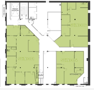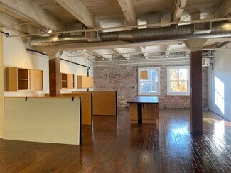 BUILDING FEATURES: Historic building with exposed brick walls, hardwood floors, creative office with unique suite features and details, three floors, dog-friendly, bike-friendly. The open stairwell has access to all suites, a shared building kitchen, 2 main entries with key fob access, an alarm system, and security cameras. Lower level includes shower facilities. Enhanced cleaning services, additional storage available, and parking available onsite.