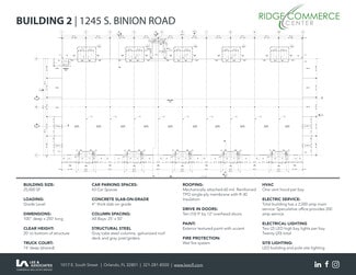 Ridge Commerce Center is a newly developed small-bay industrial park in Apopka, Florida, strategically located at the corner of Binion Road and Boy Scout Road with immediate access to State Road 429. The project consists of four grade-level industrial buildings, each totaling approximately 25,000 square feet, designed to accommodate a wide range of users. Suites are available from 2,500 square feet up to full-building opportunities of 25,000 square feet, offering flexible configurations for distribution, light manufacturing, and service-oriented businesses. The park’s efficient layout, modern construction, and proximity to major transportation corridors make Ridge Commerce Center an ideal solution for tenants seeking scalable industrial space in the Northwest Orlando submarket.