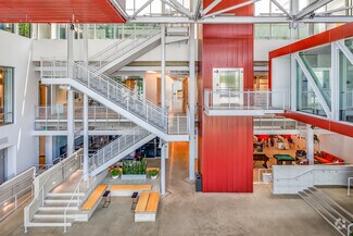 Tenants can host business meetings or private company events in one of the collaboration/meeting spaces, the executive conference center, the three-story meeting and event hall, and the floating boardroom. Greencourt Innovation Center elevates the tenant experience through community concierge services, including white-glove quality building services and engaging tenant programs to entertain and delight.