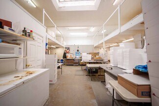 The property consists of two fully functional warehouse units. The first unit, approximately 1,200 square feet, is leased to an established fabric goods distributor. The second unit, approximately 2,000 square feet, is configured as a refrigerated warehouse and active business operation. Both warehouse spaces offer garage bay doors, approx. 11x9.