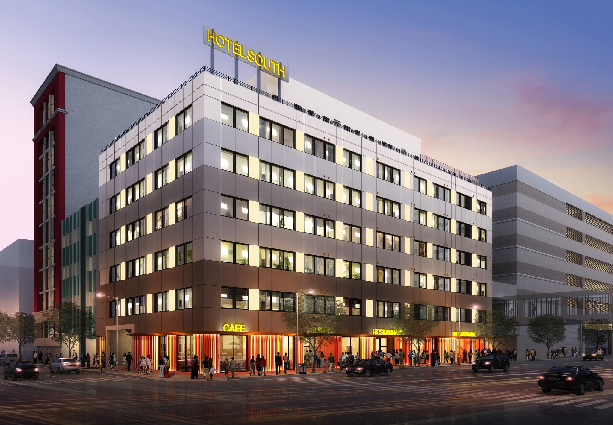 The 149 key hotel component of the property will start on the second level rising to the deck and pool area at the rooftop level. Parking will be located in one level of subterranean parking and in the adjacent parking lot immediately to the west of the building.