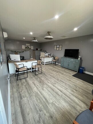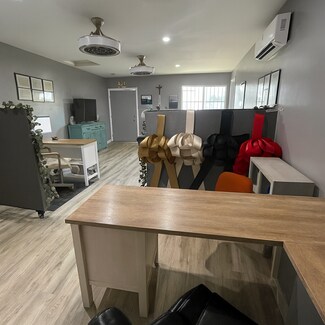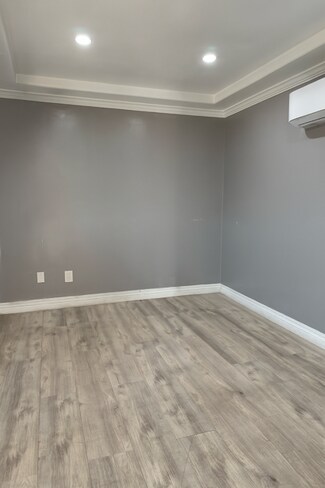 This fully renovated 1,669 sq. ft. building sits on a 0.24-acre gated lot with ample parking and excellent visibility along one of Bakersfield’s busiest corridors. The interior features modern finishes, wood-style flooring, neutral gray tones, recessed lighting, and a flexible open layout suitable for office, retail, or service-based operations.