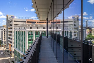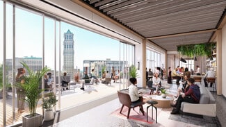 Hudson's Detroit will include a suite of amenities for office tenants, including underground parking with elevator access, a fitness center with private training rooms, concierge services, and bicycle storage. The office building offers 24/7 security with an attended main lobby and an on-site security command center. Hudson’s Detroit will have more than 13,000 square feet of private terrace space with sweeping city views and exclusive access to the central atrium spanning seven stories. With sustainability in focus, the development will target LEED certification