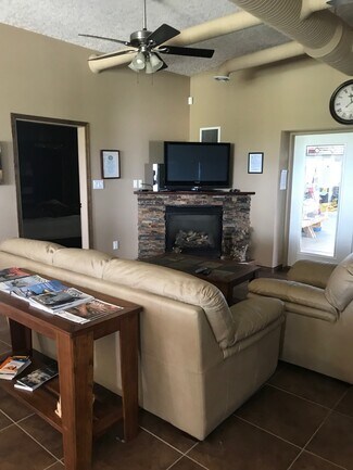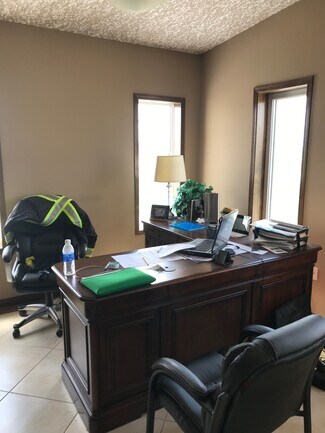 Airport Hangar at the Grande Prairie Airport. Hangar is 70 x 90 wide with an 84 ft bifold power door. Steel Construction, metal exterior, bright white metal interior. Windows around the top of the building, the owner installed after purchase. The hangar has 2 unit heaters, 2 radiant heaters, concrete floors, 220 power and a 2 piece bath. The office is 36 x 42, has 5 offices, 2 baths, reception area and kitchen. Very nicely done with tile floors and upper-end finishings. In-floor heat and municipal water, septic pumps into the airport system. The airport lease assumable expires October 31st, 2026, the new owner can enter into a new lease for 15 years. Aviation uses only. Call your Realtor today to book a viewing.
