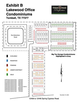 Lakewood Office Condominiums offers a high-quality professional office environment designed to support the needs of small and mid-sized businesses. Located just west of SH-249 with easy access to Grand Parkway (99), the development is ideally positioned to serve Tomball, Cypress, Magnolia, The Woodlands, and Northwest Houston.