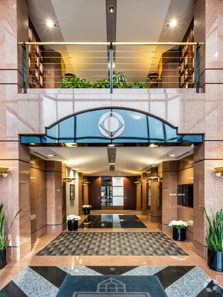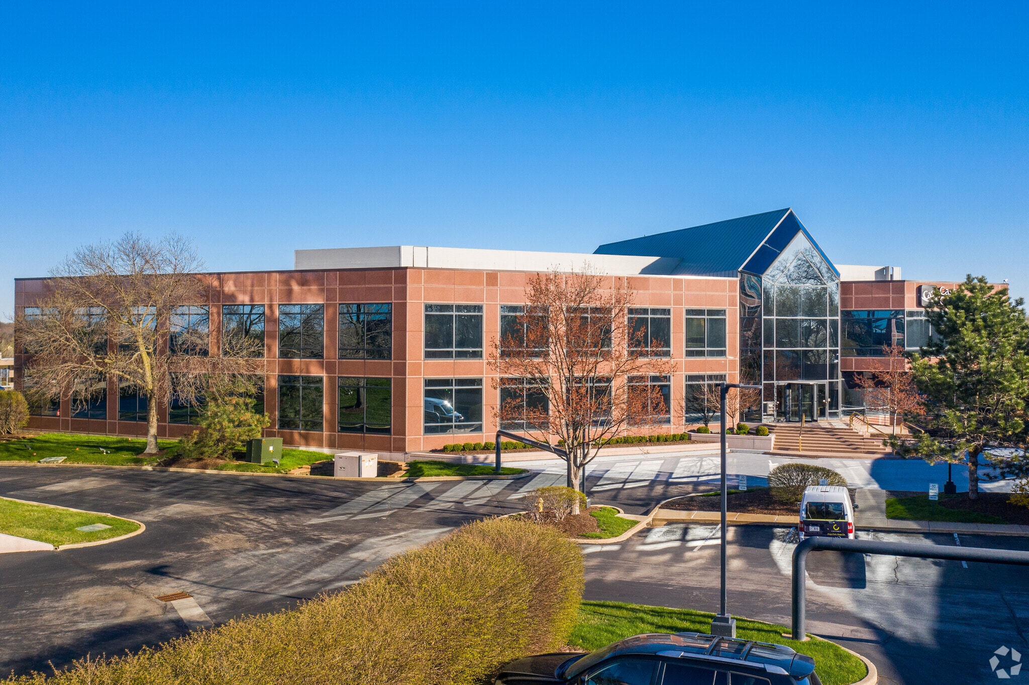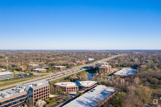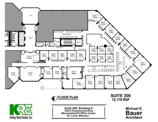 Building II is a 3-story office building with a lower level, located just north of Manchester Road and contains a rentable area of 62,578 SF situated on a 5.18 acre L-shaped parcel. The 3-story plus lower level building utilizes a steel framed structure with a two-story atrium with a polished "Missouri Red" granite panel curtain wall with 1" silver reflective (dual section) insulated glass. 10' x 6' high windows in bronze aluminum frames set 24" above floor height.