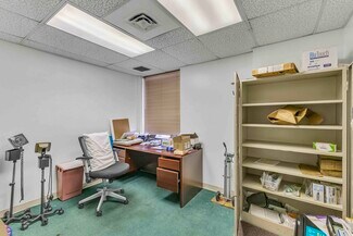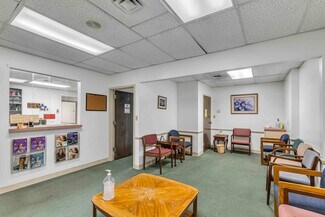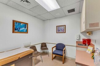 • Efficient clinical layout featuring multiple exam rooms, physician and NP offices, PFT room, reception, waiting area, kitchen, and private restroom
